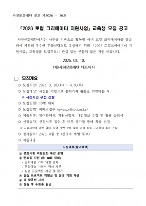 ● 공모 기간- 2026. 03. 09.(월) ~ 2026. 04. 10.(금)※…