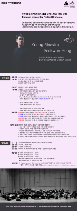 성남문화재단(대표이사 윤정국)은 개관 5년 차를 맞는 성남아트리움의 2026년 공연 라인업을 공개했다. 매년 클래식 거장들의 리사이틀과 실내악, 오케스트라 등 정통 클래식 프로그램으로 사랑받아 온 성남아트리움은 올해…