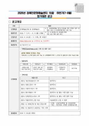 ● 공모 일정 - 접수 기간 : 2026. 4. 28(화) ~ 2026. 05. …