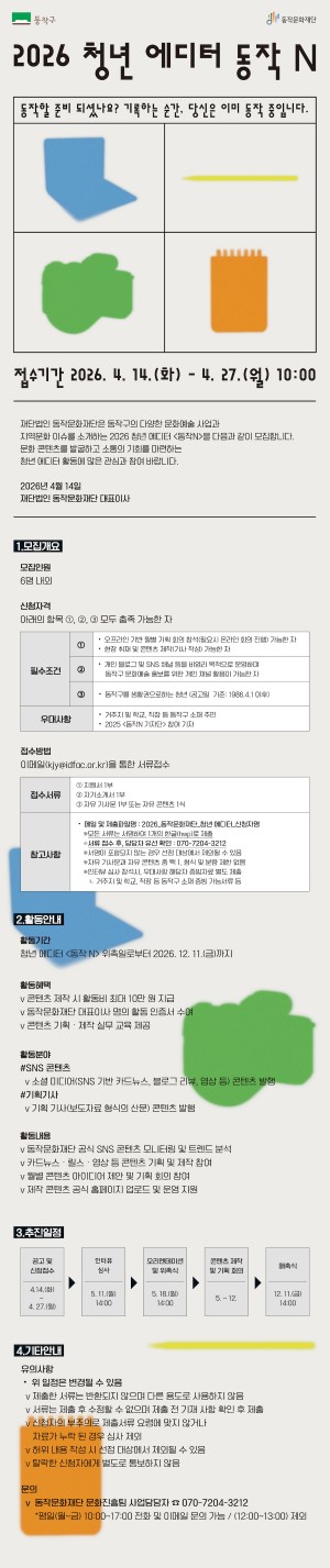 ㆍ장 소 : 두나무 아트큐브ㆍ기 간 : 2026.04.17.(금)~ 2026.05.06.(수)ㆍ주 소 :예술공원로131번길 49