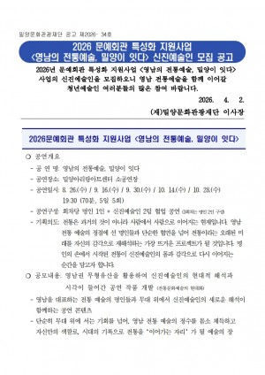 인천문화예술계에 의미 있는 성과가 나왔다. 사단법인 인천예총(회장 김재업)이 민간위탁 운영 중인 인천광역시 공공극장 문학시어터(극장장 장진웅)가 예술경영지원센터 주관 ‘2026년 공연예술 지역유통 지원사업’에 선정돼…