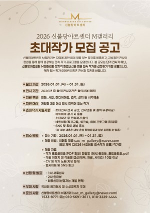 ㆍ장 소 :스페이스 엄ㆍ기 간 :2026.01.28.(수) ~ 2026.02.03.(화)ㆍ주 소 :서울 서초구 남부순환로309길 62 스페이스 엄